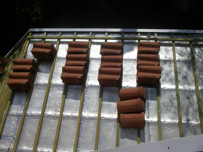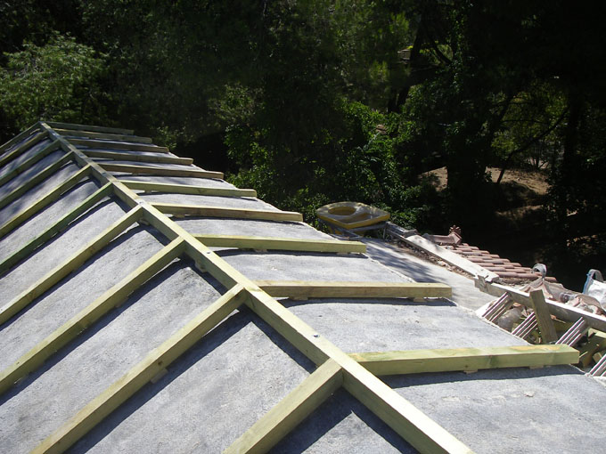 Στην πλάκα της σκεπής τοποθετήθηκε ανακλαστική θερμομόνωση και από πάνω τα καινούρια κεραμίδια τοποθετήθηκαν καρφωτά σε καδρόνια.